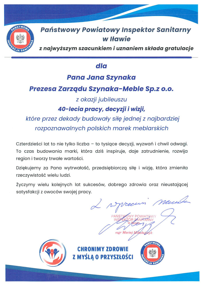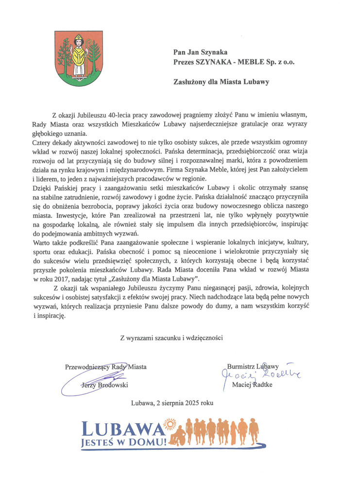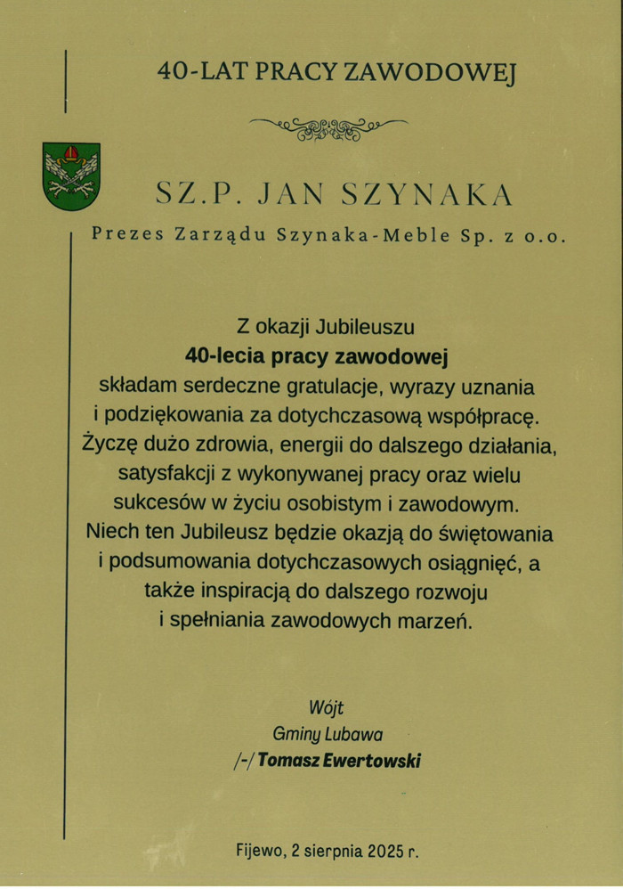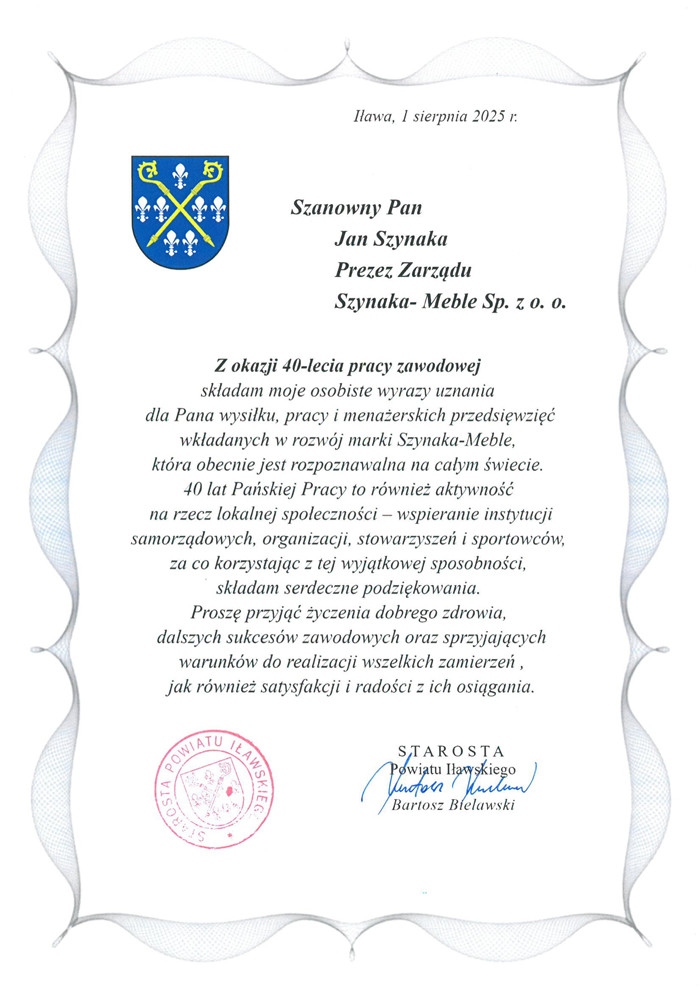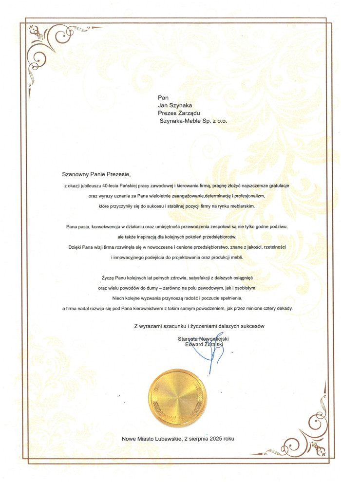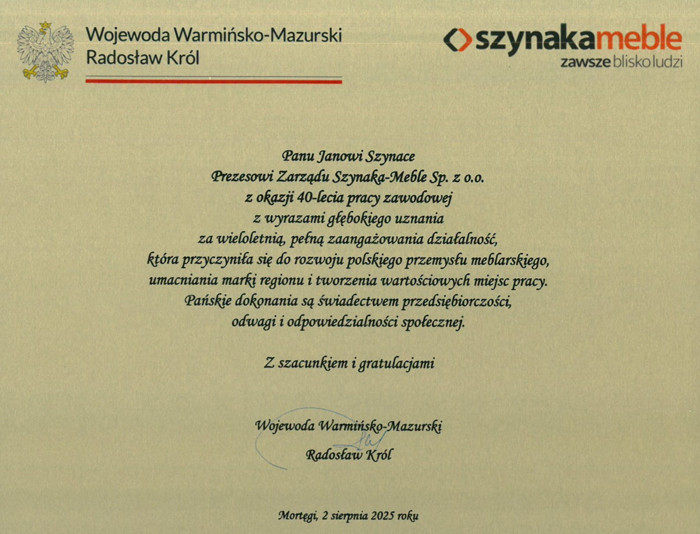 40 lat pracy, wizji i przywództwa – niezwykły Jubileusz Prezesa Grupy Meblowej Szynaka Jana Szynaka