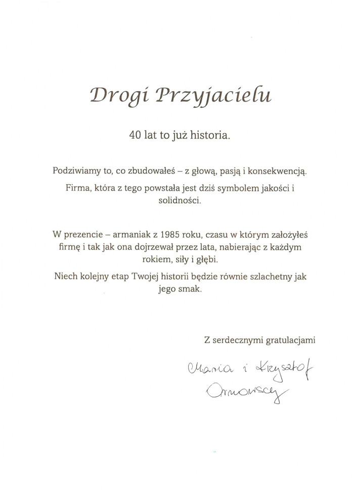 Jubileusz miał charakter zarówno oficjalny, jak i integracyjny. Program wydarzenia był starannie zaplanowany i niezwykle bogaty. W części oficjalnej wystąpili zaproszeni goście honorowi oraz partnerzy strategiczni firmy, podkreślając wagę jubileuszu oraz wpływ Prezesa na rozwój branży meblarskiej w Polsce i za granicą. Wzruszenie towarzyszyło projekcji filmu dokumentalnego opowiadającego o 40-letniej drodze zawodowej Prezesa oraz uroczystemu wręczeniu jubileuszowych wyróżnień pracownikom z ponad 25-letnim stażem. Specjalne medale otrzymali także kluczowi partnerzy biznesowi oraz osoby, które szczególnie przyczyniły się do rozwoju firmy.