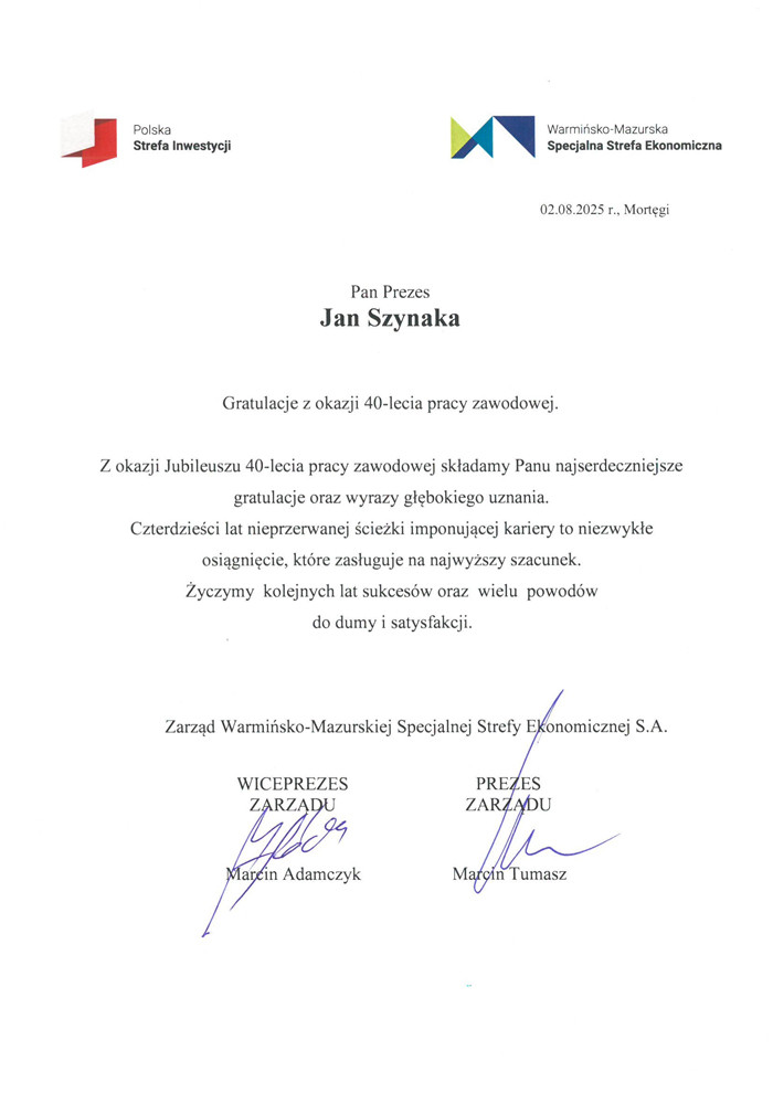 Wydarzenie wspierali liczni partnerzy firmy, m.in. Bank Millennium, Wojska Obrony Terytorialnej, Szpital Powiatowy w Iławie, Toyota oraz Bractwo Rycerskie Bratian. Koncert zespołu Andre, jubileuszowy tort, oraz widowiskowy pokaz laserowy dopełniły wyjątkowej atmosfery święta – pełnego wzruszeń, wspomnień i dumy z dotychczasowej drogi.