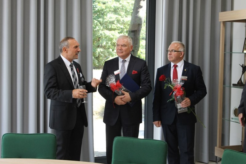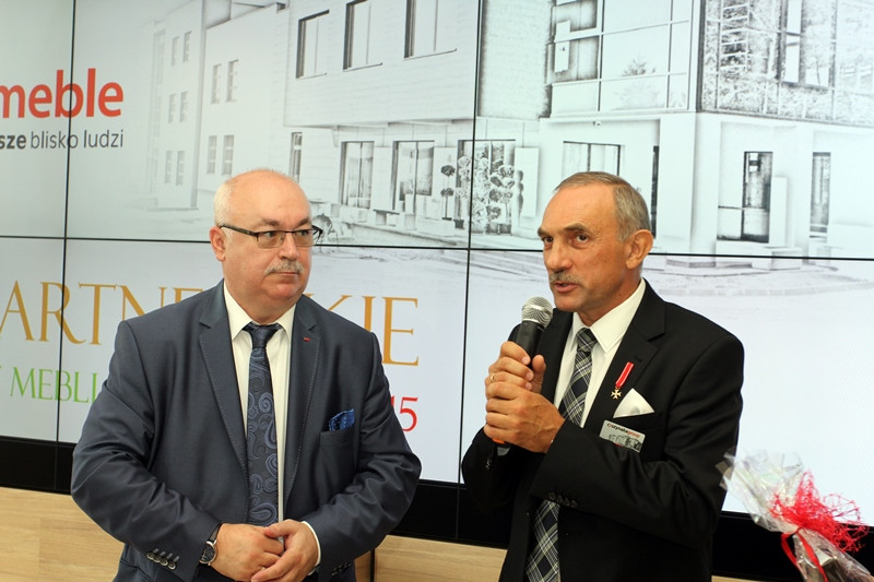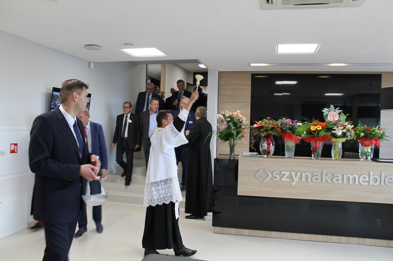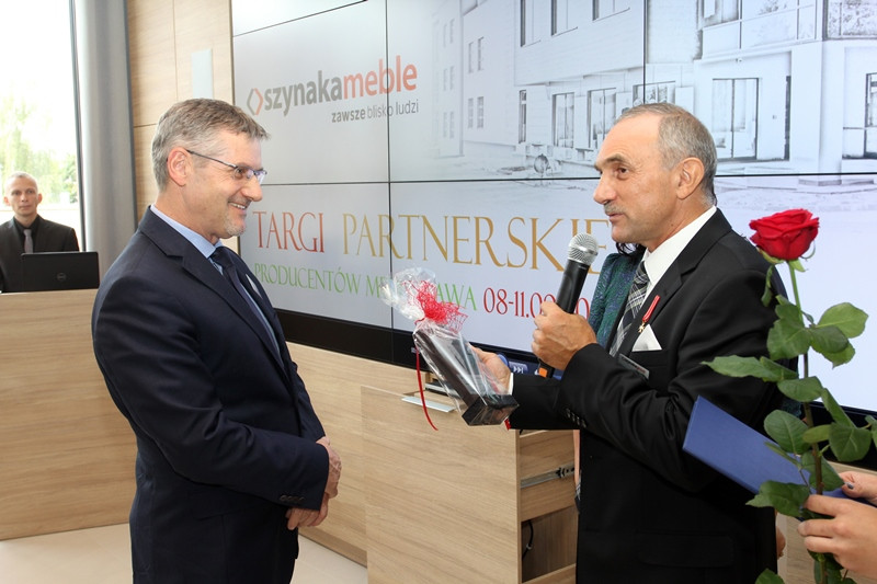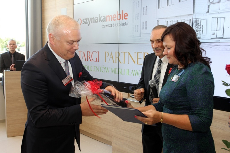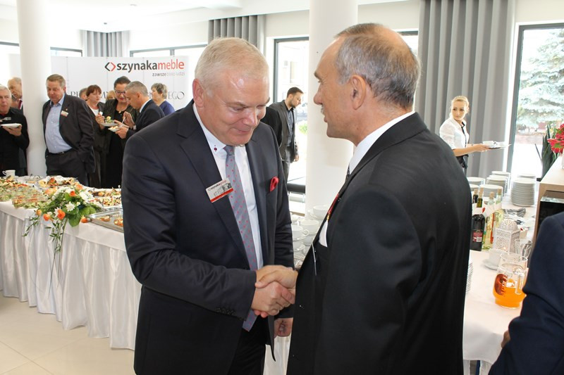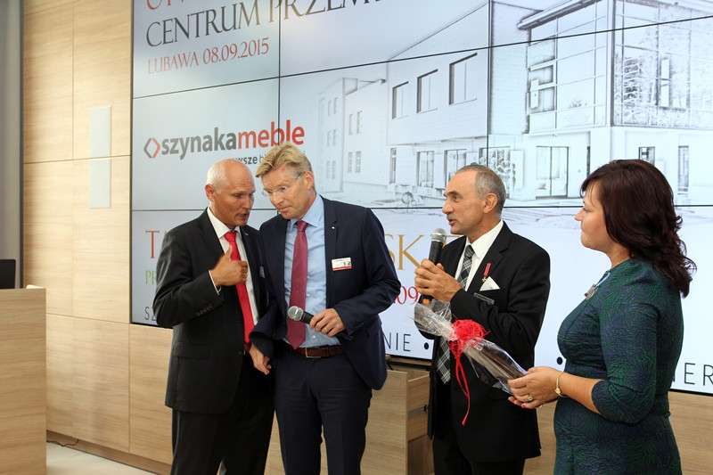 Uroczystą część spotkania rozpoczęło powitanie wszystkich gości przez Państwa Prezes Alinę i Jana Szynaka. Następnie krótkimi przemówieniami, gratulacjami i ciepłymi słowami uznania złożonymi na ręce Państwa Prezes swoją obecność zainicjowali zaproszeni goście. W dowód uznania za lata owocnej współpracy i pozytywny wpływ na rozwój branży meblowej w Polsce, Państwo Prezes Alina i Jan Szynaka wręczyli zaproszonym gościom statuetki Ambasadorzy Przemysłu Meblowego 2015. Wiceminister Finansów Pan Janusz Cichoń dokonał uroczystego wręczenia Pani Prezes Alinie Szynaka Odznaki Honorowej za Zasługi dla Rozwoju Gospodarki Rzeczypospolitej Polskiej przyznaną przez Premiera, Ministra Gospodarki Pana Janusza Piechocińskiego. Podniosły charakter spotkania nadawał występ Młodzieżowej Orkiestry Dętej z Iławy. Po uroczystych przemówieniach i wyróżnieniu zaproszonych gości nastąpiło oficjalne przecięcie wstęgi i poświęcenie budynku przez Kapelana Meblarstwa i Rzemiosła diecezji toruńskiej Księdza Proboszcza Andrzeja Kusińskiego. Następnie Gospodarze spotkania zaprosili przybyłych gości do zwiedzania Centrum Przemysłu Meblowego, którego nowoczesny design oraz praktyczne rozwiązania konstrukcyjne wzbudzały podziw i zachwyt zwiedzających. Zrealizowanie tak ważnej inwestycji, której wartość osiągnęła prawie 7 mln zł to dla Państwa Prezes Aliny i Jana Szynaka prawdziwy powód do dumy, a także satysfakcji z osiągniętego sukcesu. Wydarzenie to dowodzi, że Grupa Meblowa Szynaka realizując tak ambitne przedsięwzięcia swoim zapałem i determinacją działania może stanowić dla innych godny wzór do naśladowania, mając tym samym namacalny wpływ w integrowanie i łączenie światowej branży meblowej w jednym miejscu.