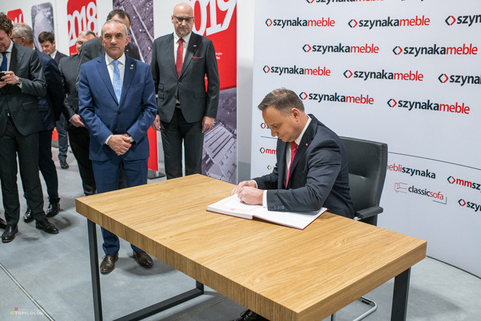 O godzinie 14:30 przyszedł czas na powitanie honorowego gościa uroczystości Prezydenta RP Andrzeja Dudy. W swoim wystąpieniu Prezydent podkreślił, że jest dumny, kiedy patrzy na polskie zakłady meblarskie, które rozwijają się nie tylko w kraju, ale także podejmują ekspansję zagraniczną. Prezydent podkreślał, że od 30 lat "w wolnej Polsce można śmiało realizować największe wizje gospodarcze, można się rozwijać, kiedy można działać na wolnym rynku", ale trzeba mieć ku temu "talent, samozaparcie, szczęście i umiejętności", których nie brakuje przedsiębiorcom z branży meblarskiej.