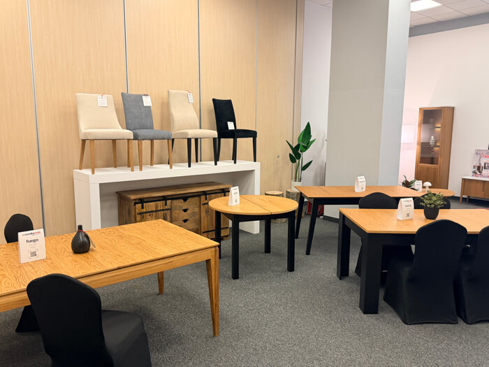 Podczas targów zaprezentowaliśmy wybrane kolekcje mebli drewnianych, które odzwierciedlają zarówno aktualne kierunki wzornicze, jak i możliwości produkcyjne naszych zakładów. W centrum naszej prezentacji znalazły się rozwiązania łączące nowoczesny design, wysoką jakość wykonania oraz efektywność produkcyjną – kluczowe elementy dla partnerów działających na globalnym rynku meblowym.